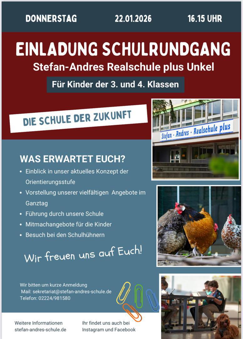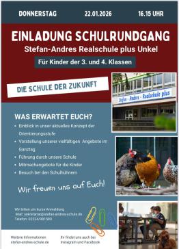 ... auf der Homepage der Stefan-Andres-Realschule plus in Unkel. Wir laden Sie ein, uns virtuell zu besuchen und sich einen ersten Eindruck zu verschaffen. Vielleicht lernen wir uns dann einmal persönlich kennen.