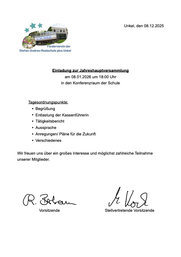 wir möchten Sie, Eltern, SchülerInnen, Ehemalige und Interessierte als Mitglieder für unseren Verein der Freunde und Förderer der Stefan-Andres-Realschule plus Unkel gewinnen. Unterstützen Sie durch Ihre Mitgliedschaft die Schulgemeinschaft bei zahlreichen Projekten, wie z.B. der Gestaltung des Schulgartens, des Schulhofes und weiterer sozialer und nachhaltiger Aktionen.