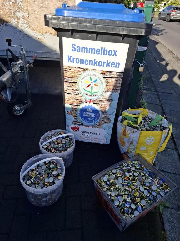 Die Klasse 10 übernahm schließlich den Transport zur Sammelstelle, von wo aus die Kronkorken zugunsten des Förderkreises für krebskranke Kinder und Jugendliche e.V. in Bonn weiterverarbeitet werden.