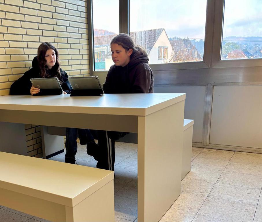Ein erster Schritt ist nun gemacht: Das Foyer sowie die Flure der Klassenstufen 7/8 und 9/10 wurden mit neuen Möbeln ausgestattet. Diese laden nun zum Verweilen, Arbeiten und Begegnen ein.