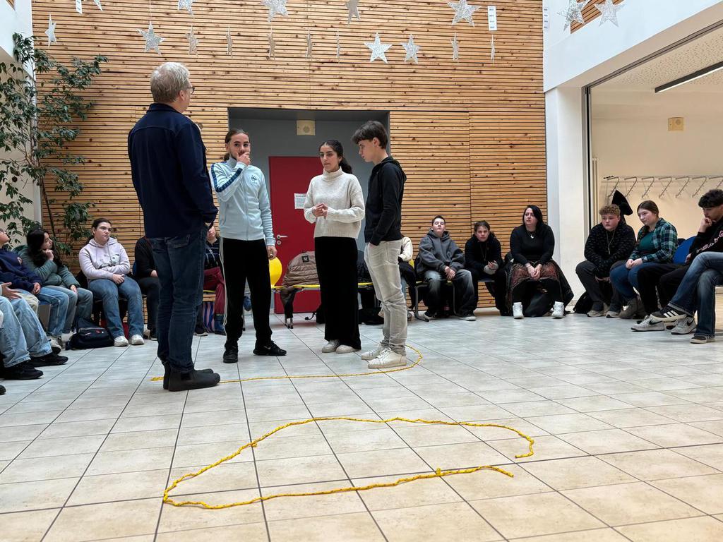 Während dieses Präventionstages hatten alle Klassen die Möglichkeit, sich intensiv mit dem Thema auseinanderzusetzen. Gemeinsam wurden eindrucksvolle Statements gegen Gewalt entwickelt, die heute auf dem Schulhof an der eigens aufgestellten Orangenen Bank vorgetragen wurden – einem Symbol für Solidarität und den Kampf gegen Gewalt.
